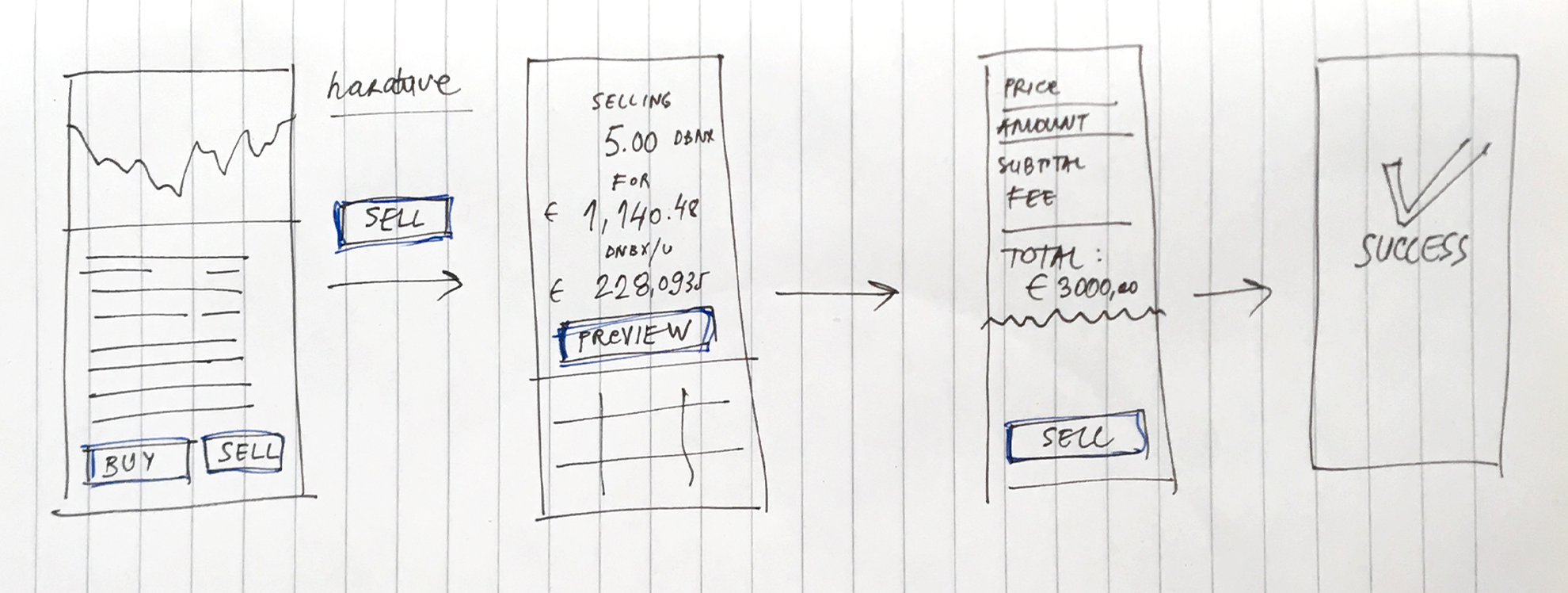 Having in mind that the user needs to make several decisions in order to successfully finish the trade I separated those decisions into a few steps.