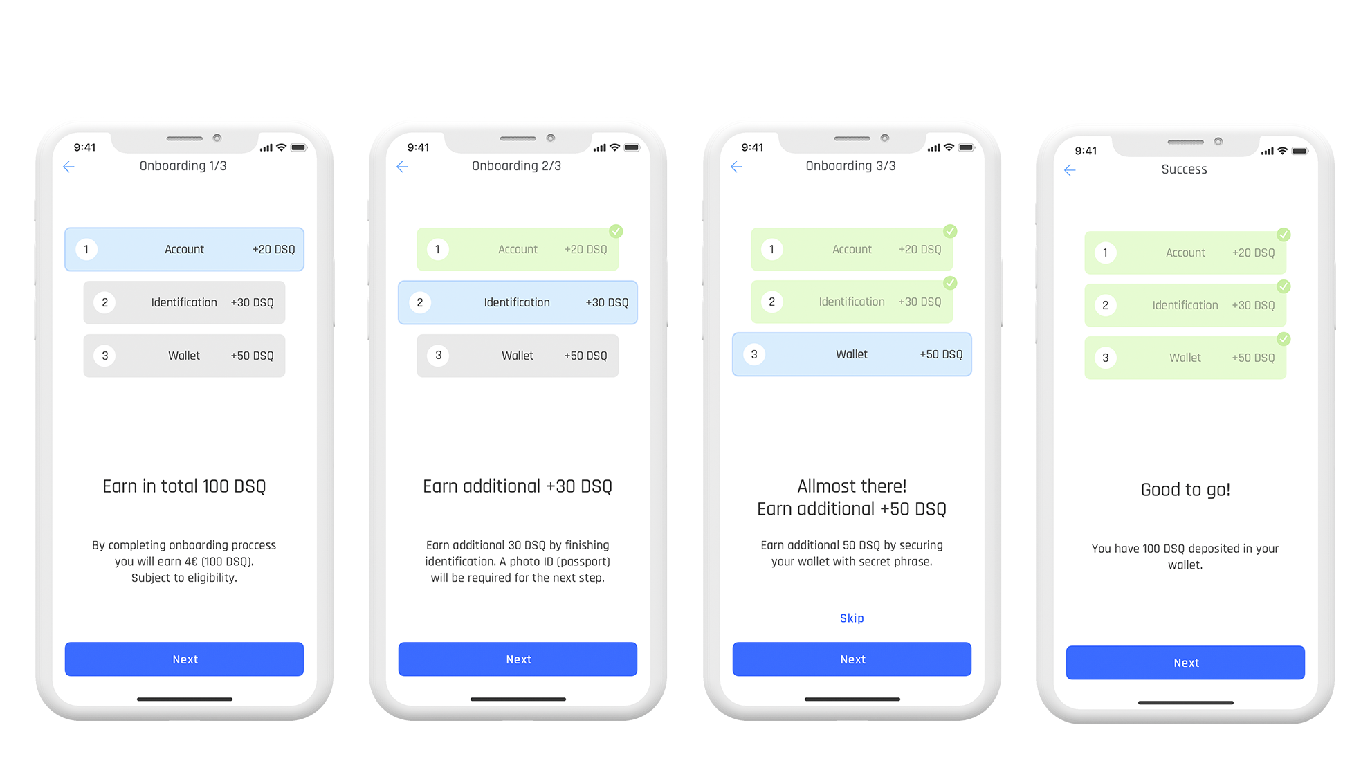 Because Dstoq is a financial application it has a more complex sign-in process that includes an identity check next to the usual steps. Keeping users engaged throughout the process is a very challenging task.